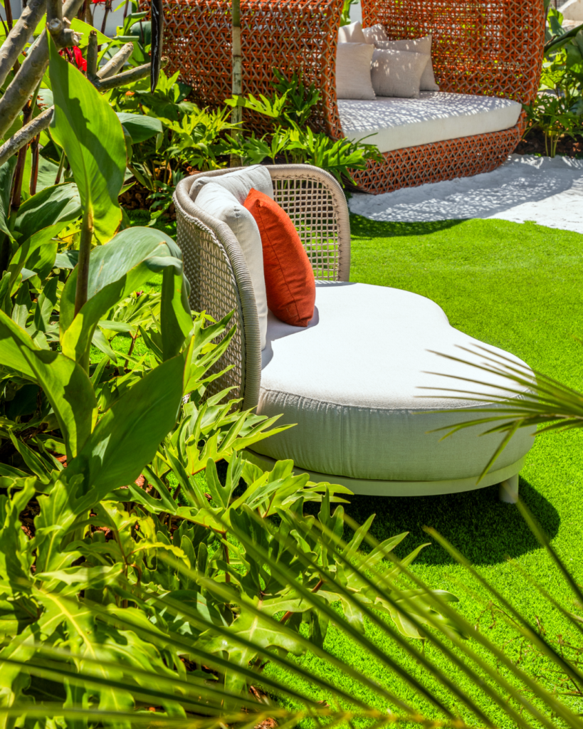 Seu projeto traduz o conceito de OÁSIS com maestria, explorando o verde como elemento de conexão entre interior e exterior, e transformando o espaço em um verdadeiro convite à contemplação e ao bem-estar. A harmonia entre texturas naturais, volumes arquitetônicos e espécies tropicais cria uma atmosfera de descanso e refúgio em meio à cidade.