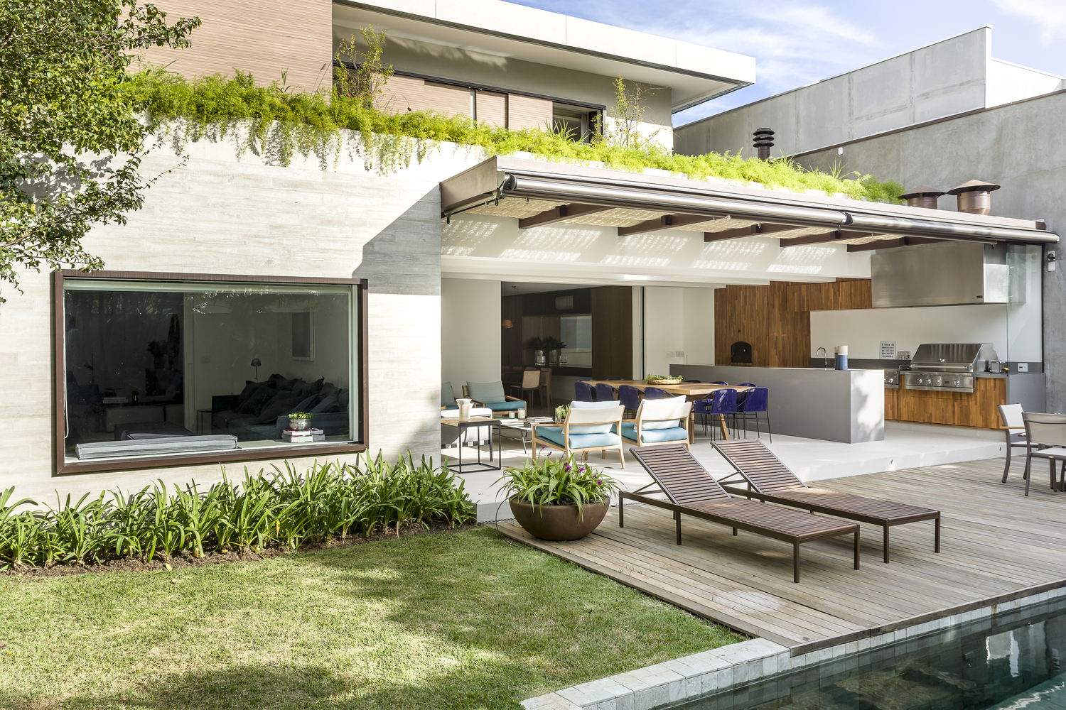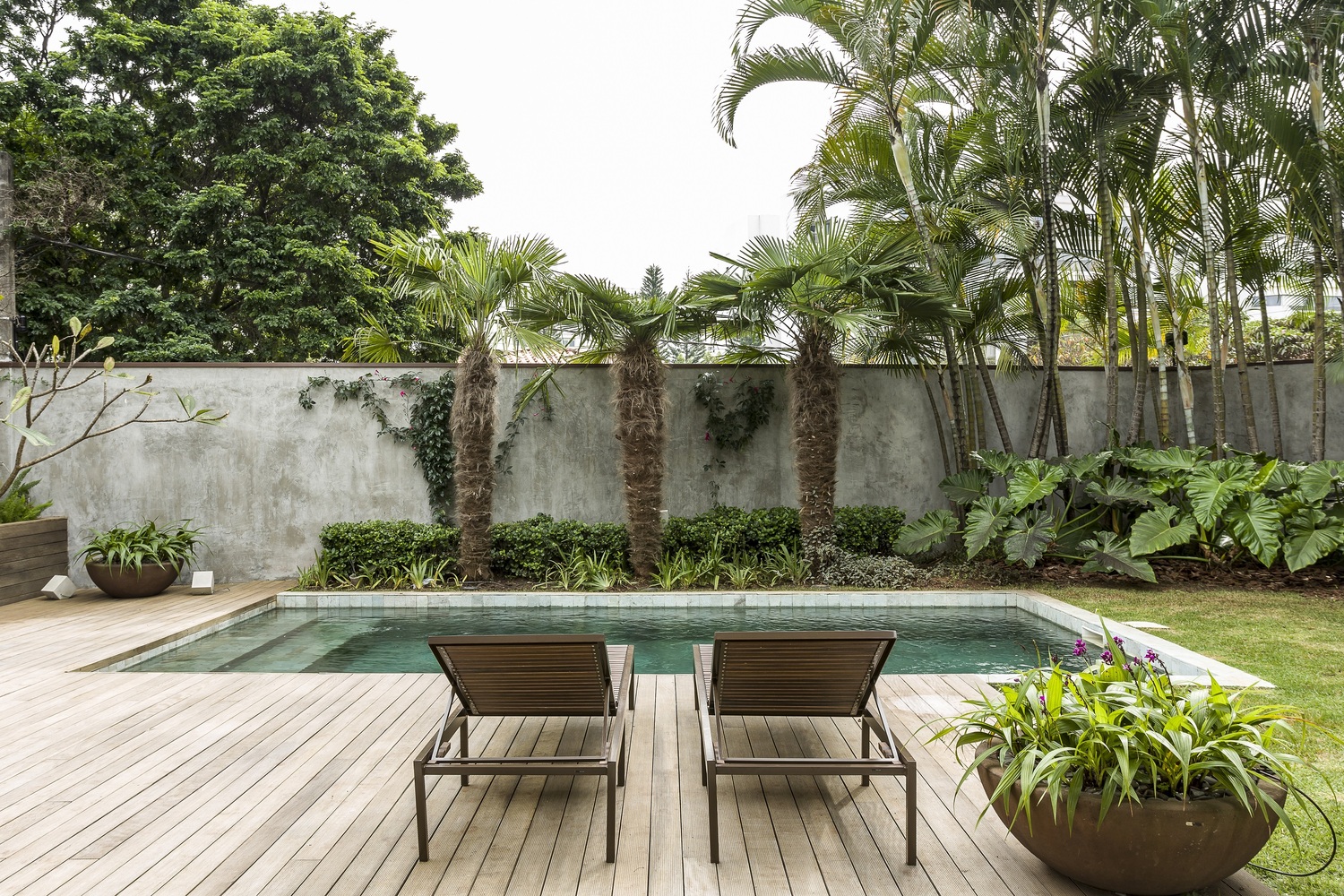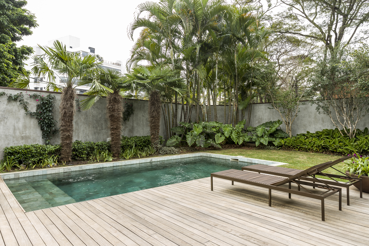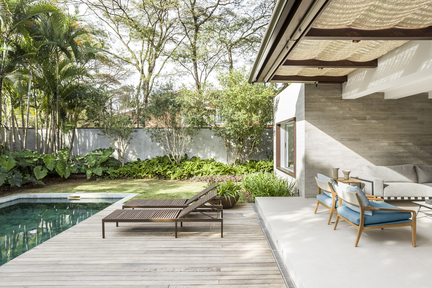 Como não poderia deixar de ser em um projeto que valoriza a vida ao ar livre, o verde desempenha um papel fundamental. O projeto de paisagismo, assinado por Marcelo Bellotto, invade a casa através de grandes panos de vidro, transformando o jardim em uma obra de arte viva que acompanha a convivência da família. A escolha da vegetação conversa diretamente com a arquitetura contemporânea, trazendo aquele respiro tão necessário em meio à agitação urbana de São Paulo.