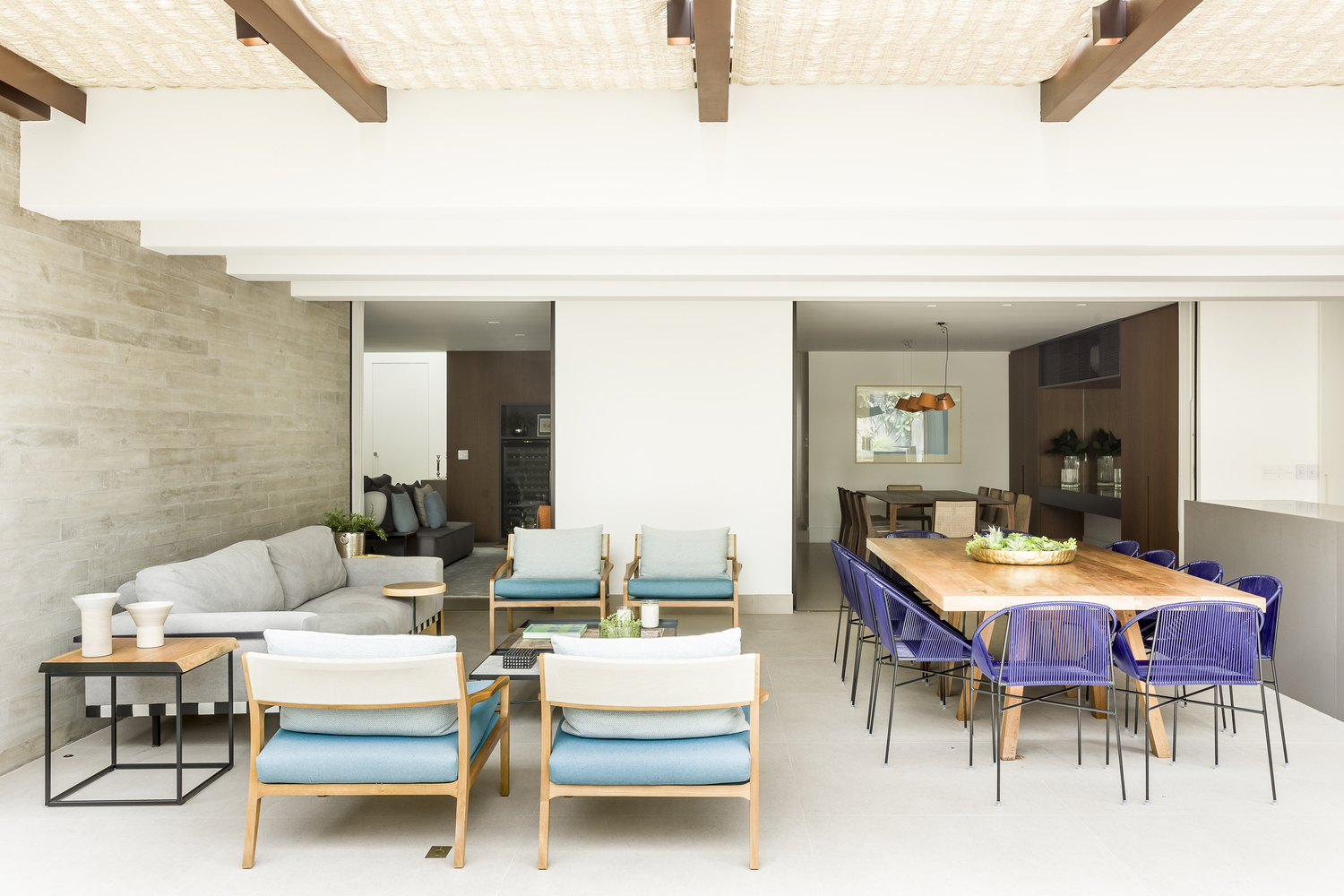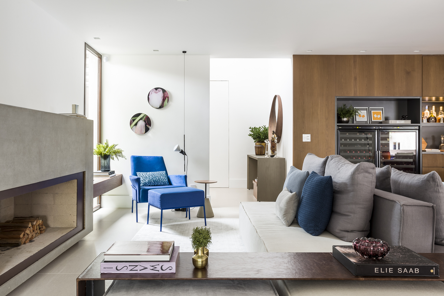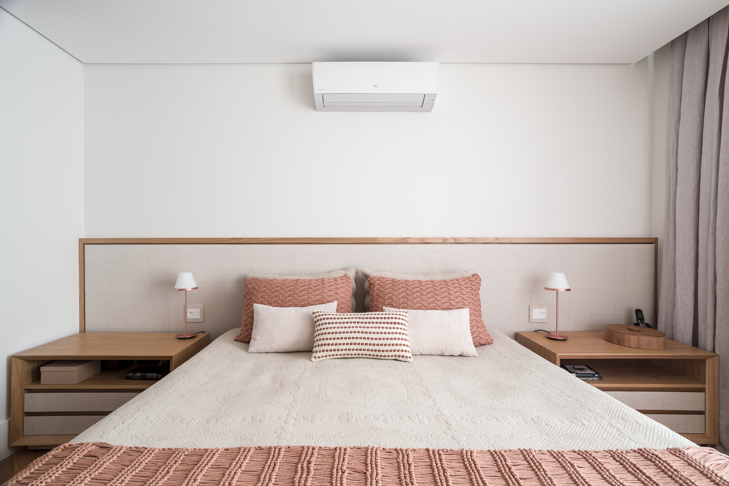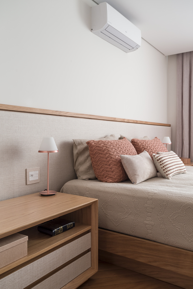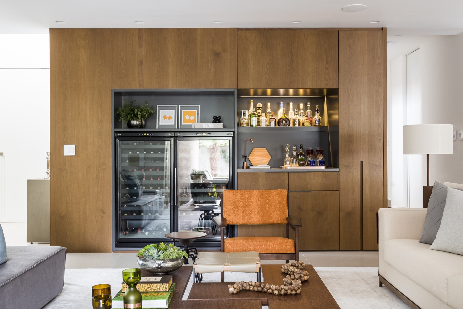Nos interiores, a paleta de tons neutros impera, servindo de pano de fundo para a mistura de texturas e materiais ricos, como a madeira e o concreto. O mobiliário foi pensado para priorizar peças atemporais do design brasileiro, mescladas com itens mais despojados. Isso garante que a casa seja não apenas sofisticada, mas também funcional, prática e extremamente acolhedora para o uso diário da família.